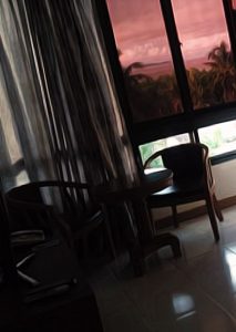 Another clap of thunder and suddenly, there was a man on the stairs above us.